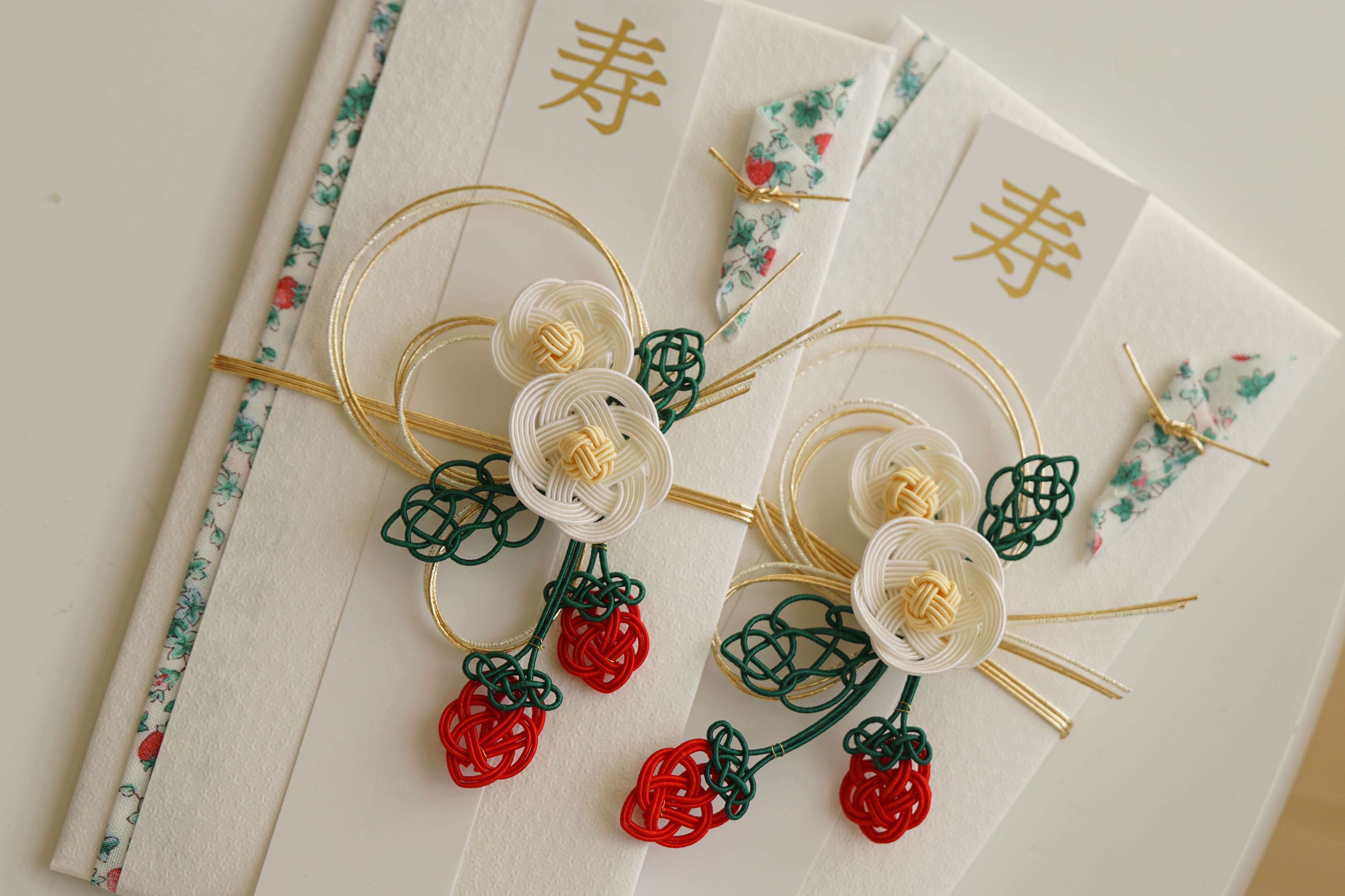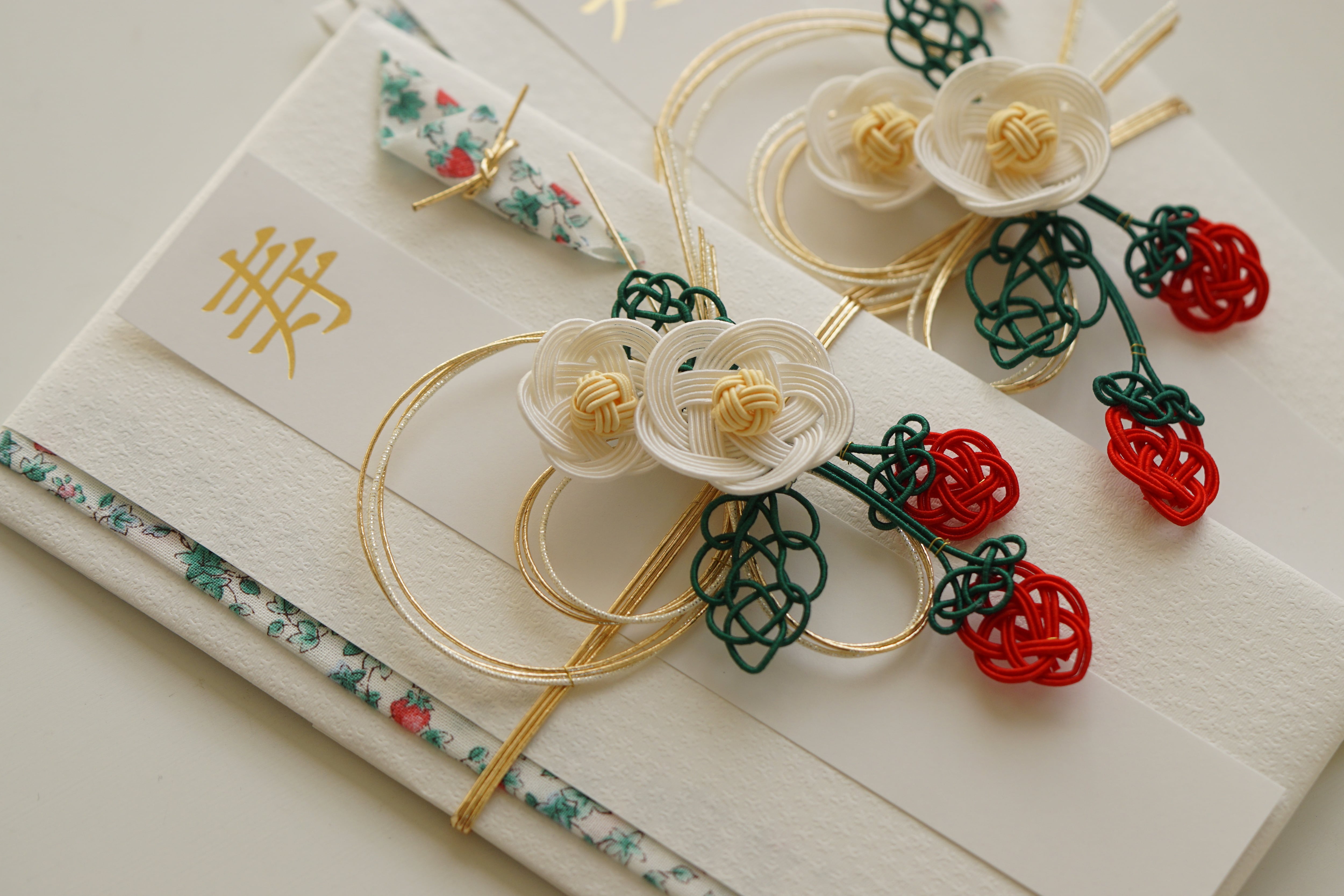 ころんと実った いちご を水引であしらった御祝儀袋。